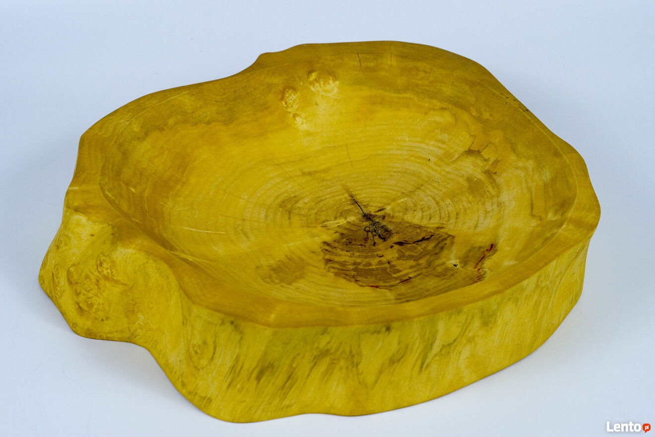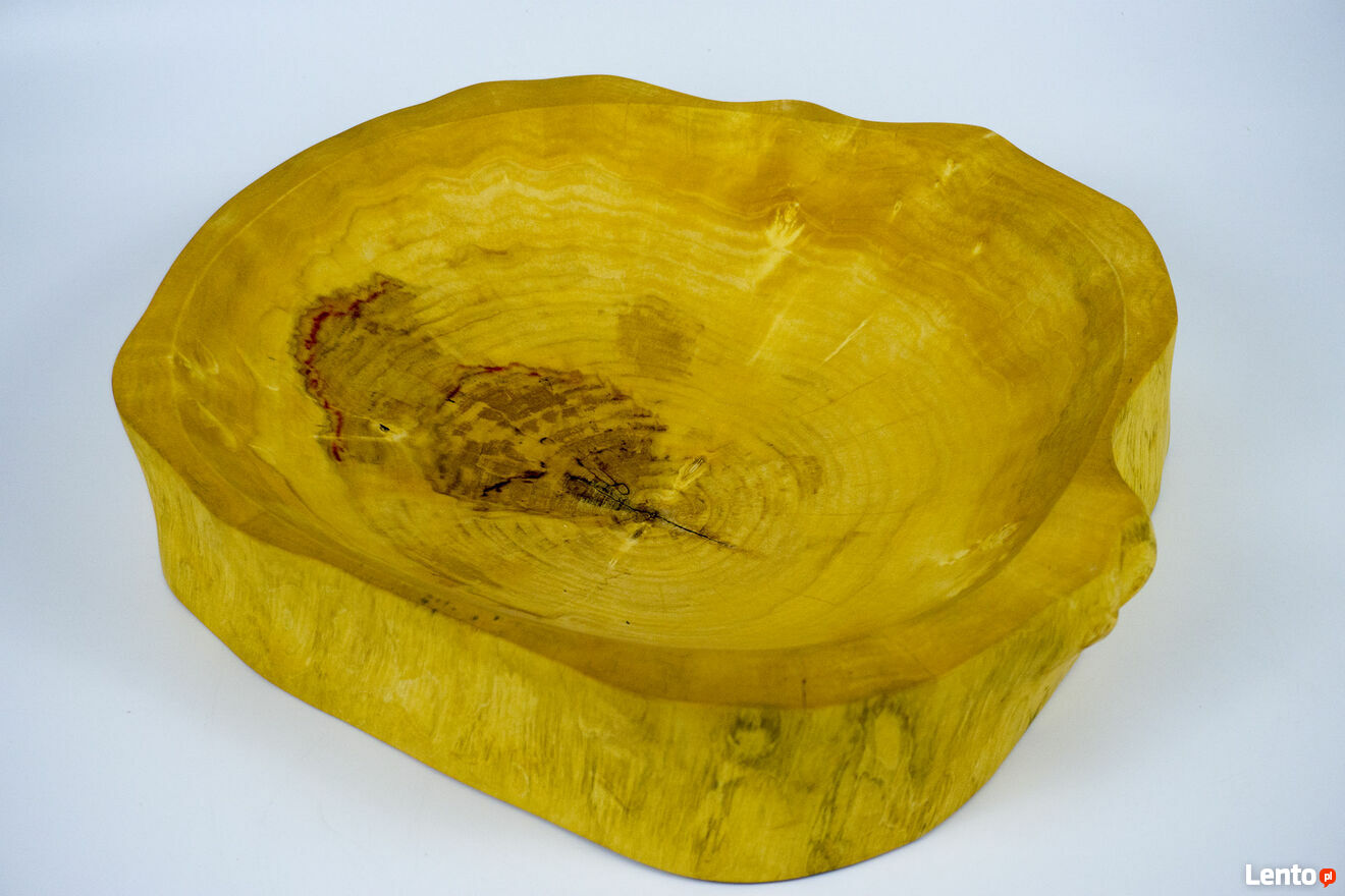 Patera o średnicy około 40 cm grubości 8 cm i głębokości 55 cm, wykonana z plastra klonu, zabezpieczona olejem posiadającym certyfikat do kontaktu z żywnością.Sprzedaję dokładnie ten produkt, który widoczny jest na zdjęciu.